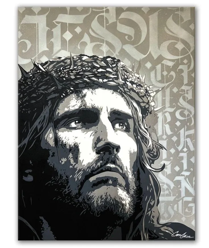 JESUS CHRIST (BLACK and GRAY) - 30” x 40” x 1 1/12” Aerosol on Gallery Wrapped Canvas.